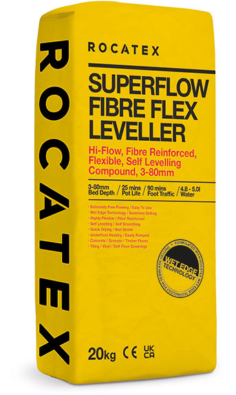 ROCATEX Superflow Fibre Flex Leveller is an extremely free flowing, quick drying, fibre reinforced, highly flexible, self levelling smoothing screed, blended from a mixture of the highest quality, fine grade raw materials.