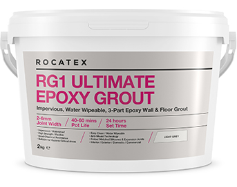 ROCATEX RG1 Ultimate Epoxy Grout is a 3-part, epoxy resin-based grout developed to provide a unique water wipeable wash-off system. It creates an impervious, waterproof tile joint with excellent mechanical strength which is resistant to chemical attack. Suitable for interior and exterior wall and floor grout joints between 2-6mm.